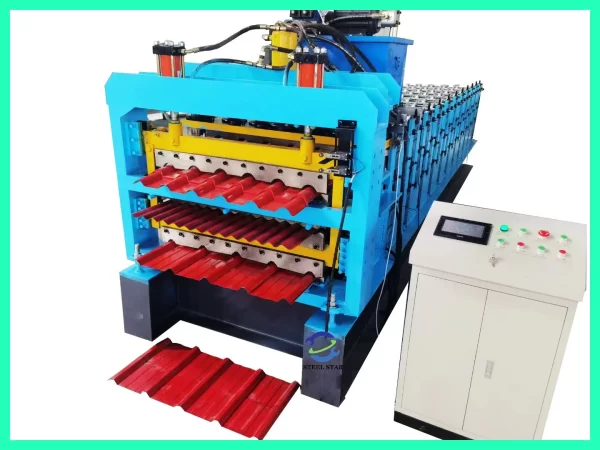 Uma máquina tem dois modelos, economizando espaço e reduzindo custos. Três camadas/três modelos podem ser trapezoidais + corrugados + combinação aleatória de telhas galvanizadas.